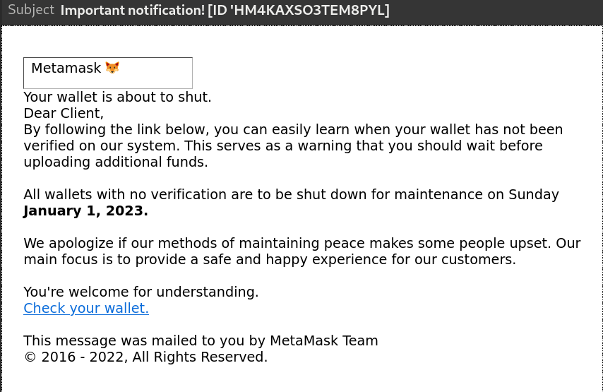 Note: do not visit any of the links depicted in the message examples, they are all scams. In this section I intend to analyze/showcase examples of scams you might receive and how they work.