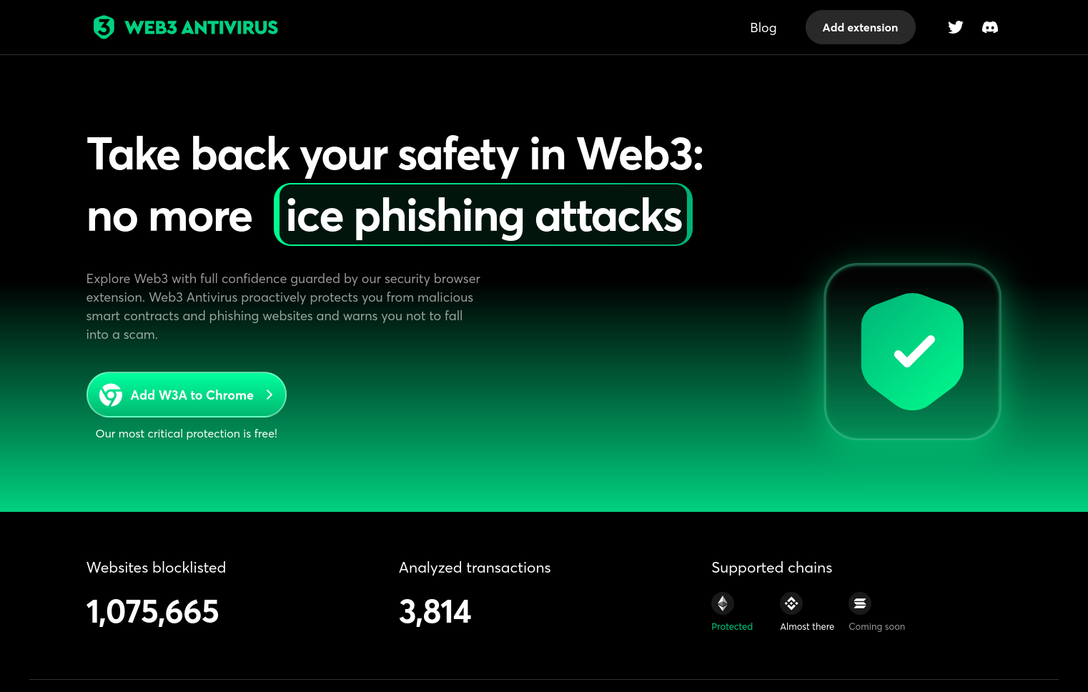 Scam: The link redirects to a 'legit looking' website with a supposed web3 antivirus software that can be downloaded to avoid scams