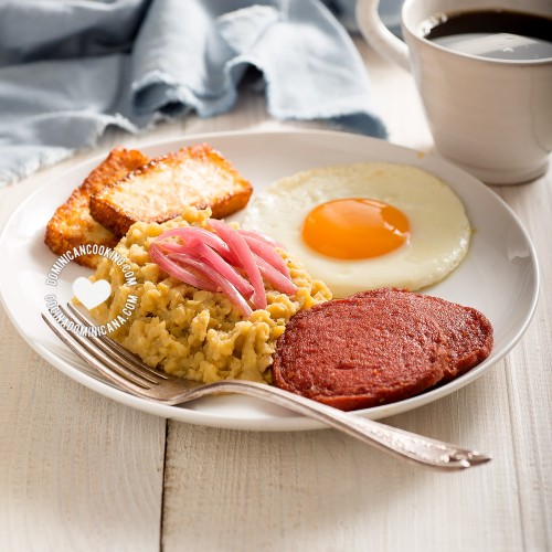 In the DR there’s a very traditional plate called “Mangú” (peeled, boiled and mashed plantains) which people usually accompany with fried eggs, fried salami, sautéed onion, fried cheese, avocado, or whatever they want!